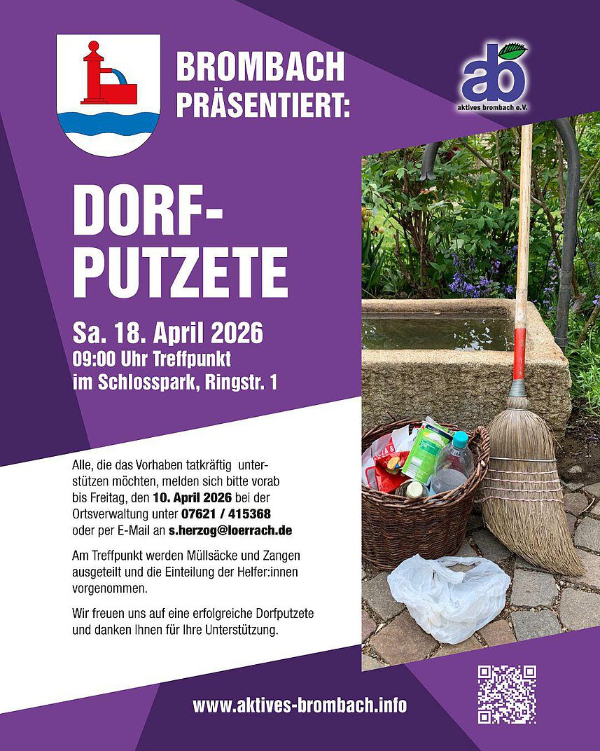 Am Samstag, den 18.04.2026 findet die 6. Dorfputzete in Brombach statt.